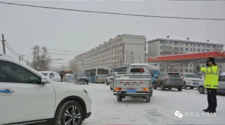 棉衣早已加身,马路上的警察叔叔也穿上厚厚的棉服了,那鲜艳的荧光色成为白茫茫一片世界里亮丽的一道风景线!
